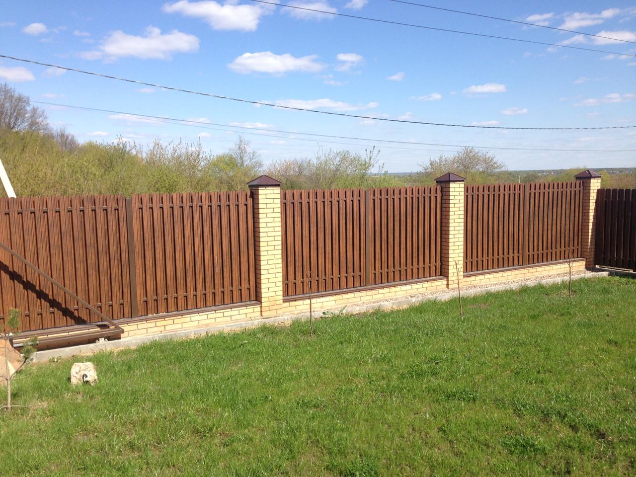 Заборы и ограждения из евроштакетника с кирпичными столбами 200 метров в Красноармейске