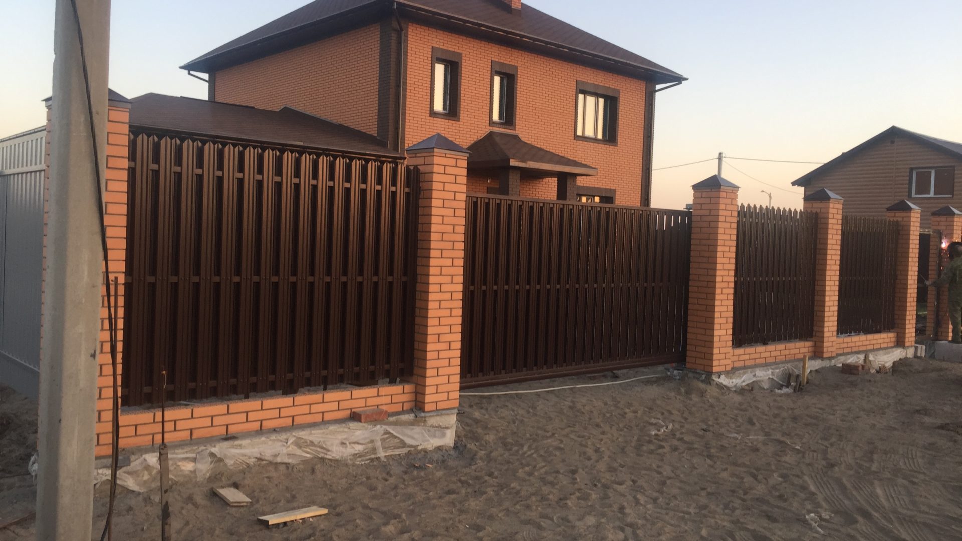 Заборы и ограждения из евроштакетника с кирпичными столбами 500 метров в Красноармейске