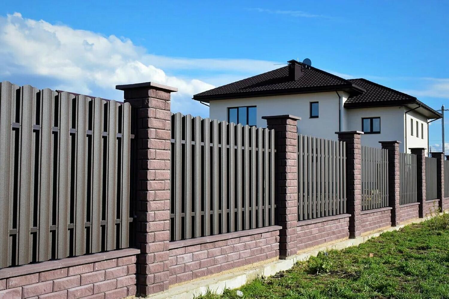 Заборы и ограждения из евроштакетника с кирпичными столбами 70 метров в Красноармейске