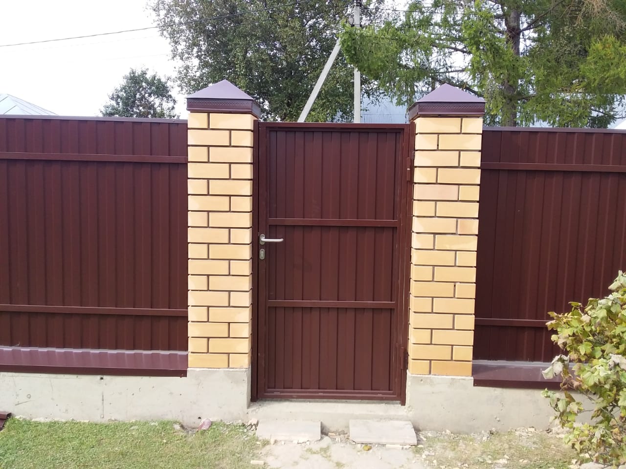 Заборы и ограждения из профнастила с кирпичными столбами 200 метров в Красноармейске