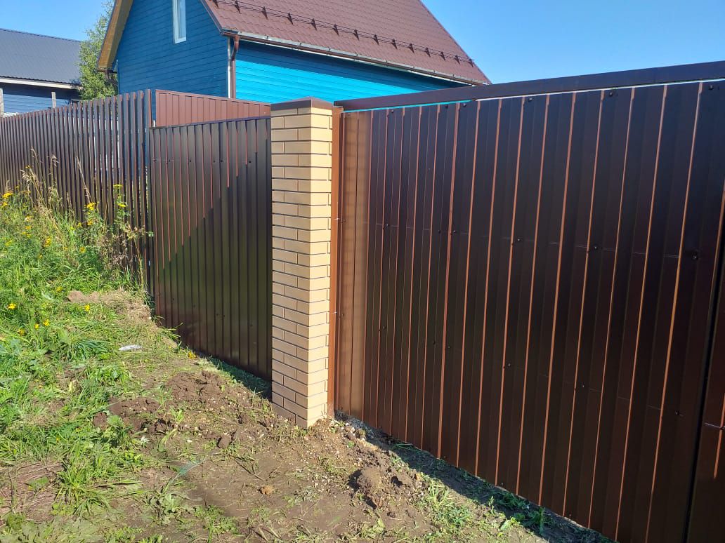 Заборы и ограждения из профнастила с кирпичными столбами 50 метров в Красноармейске
