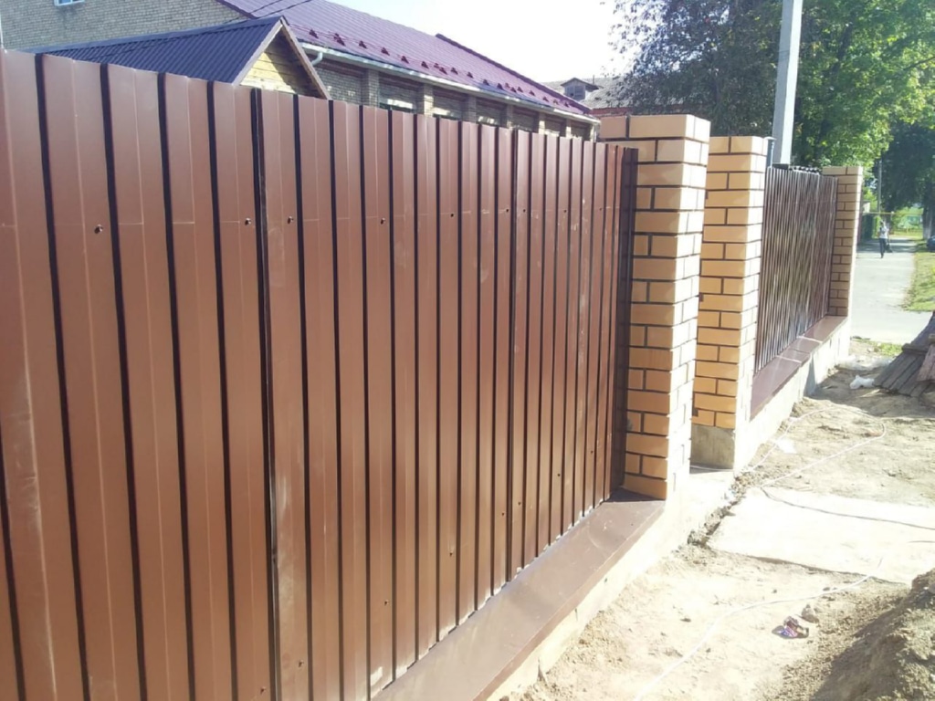 Заборы и ограждения из профнастила с кирпичными столбами 15 соток в Красноармейске