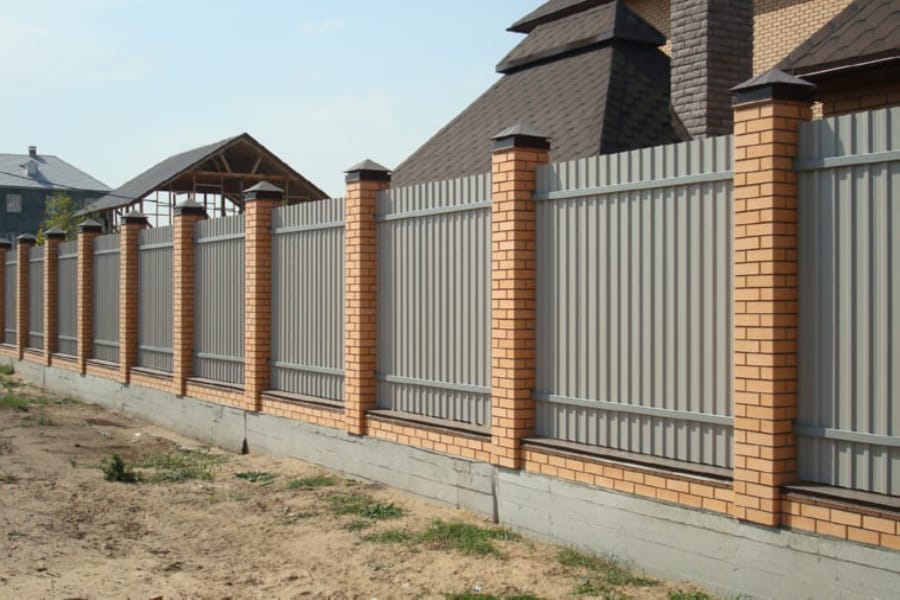 Заборы и ограждения из профнастила с кирпичными столбами 6 соток в Красноармейске